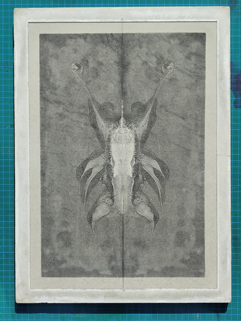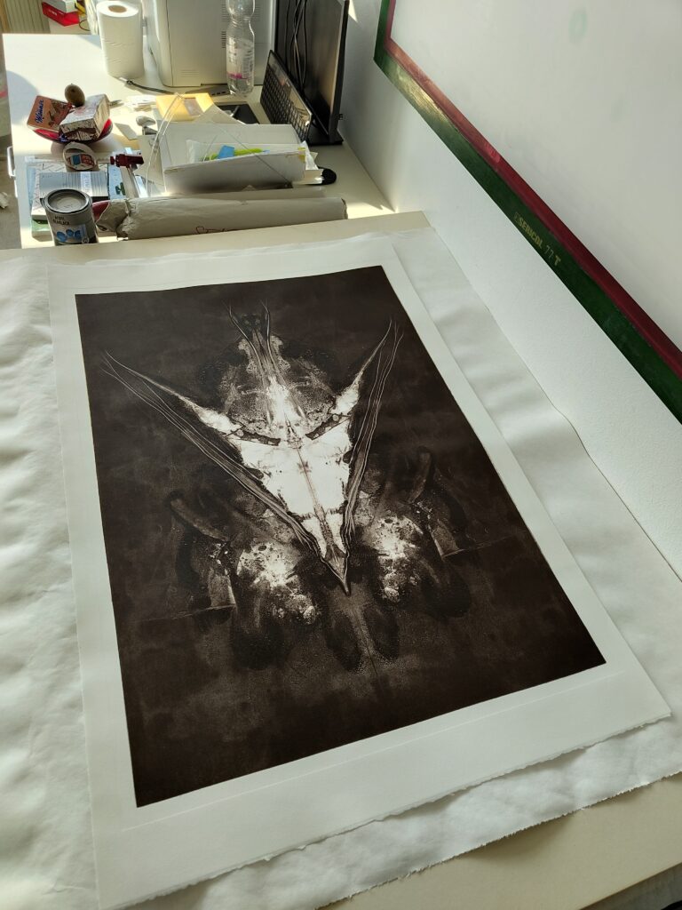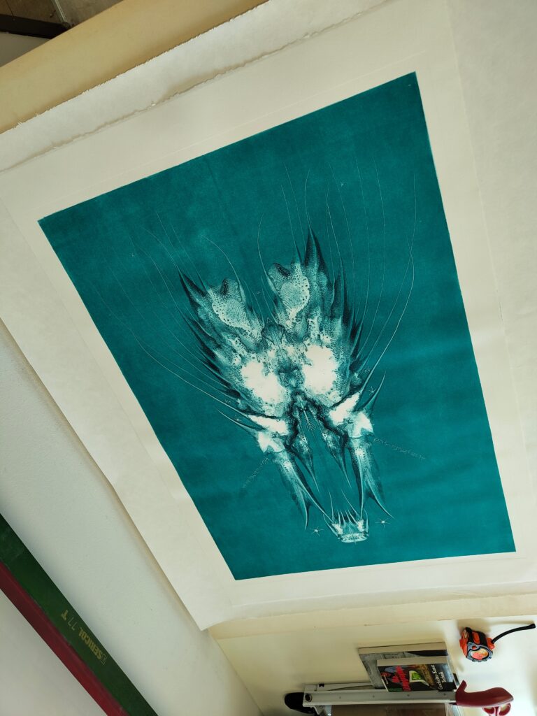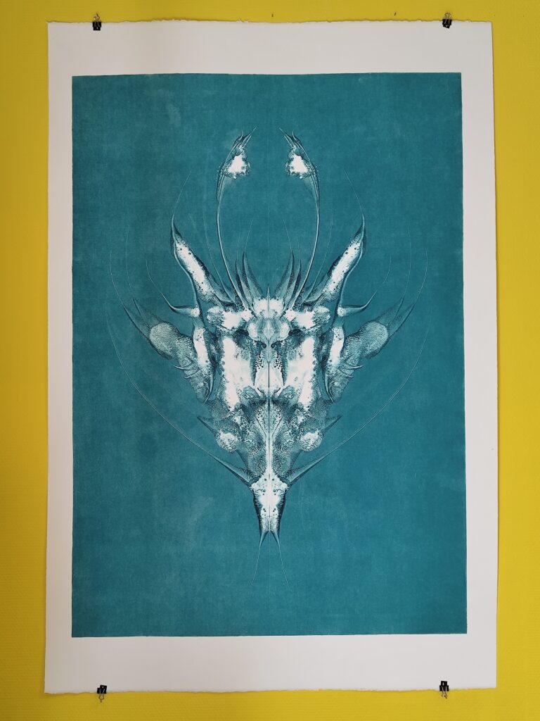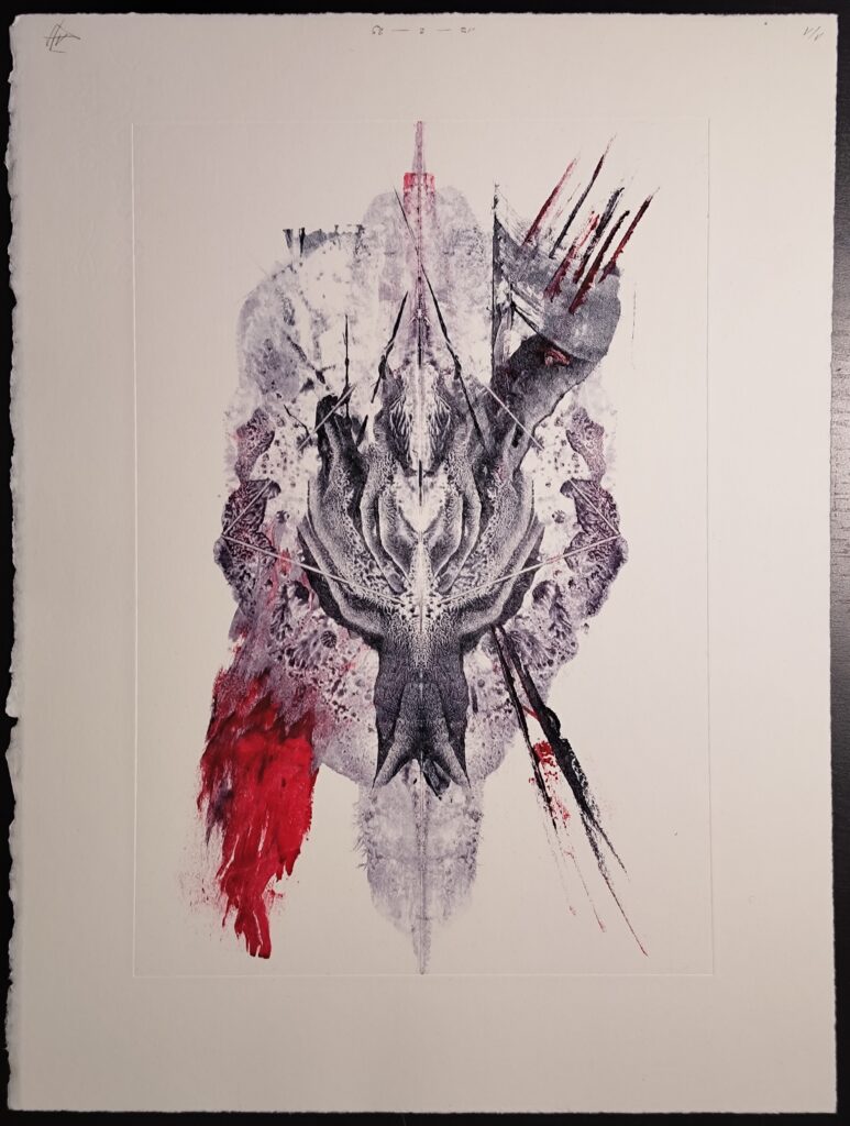 Seit zirka 2013 arbeite ich mit der "Brazygraphie". Ein Monotypieverfahren, das auf der Decalcomanie basiert. Die Brazygraphie ist um eins besser als die nicht existierende Crazygraphie.
