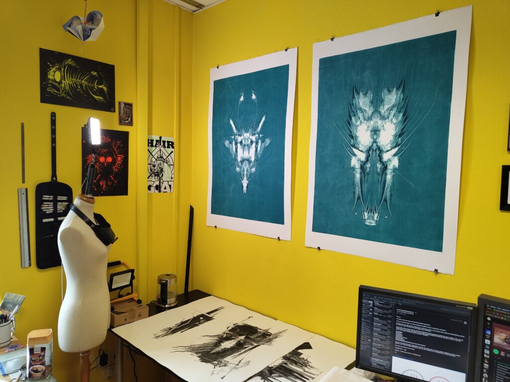 Durch jahrelanges Experimentieren mit unterschiedlichsten Materialien ist es mir inzwischen möglich die Bilder auf Papier zu bringen. Mit Hilfe von digitalen Bildbearbeitungsprogrammen werden diese noch weiter verzerrt und gestört (Glitch Art).