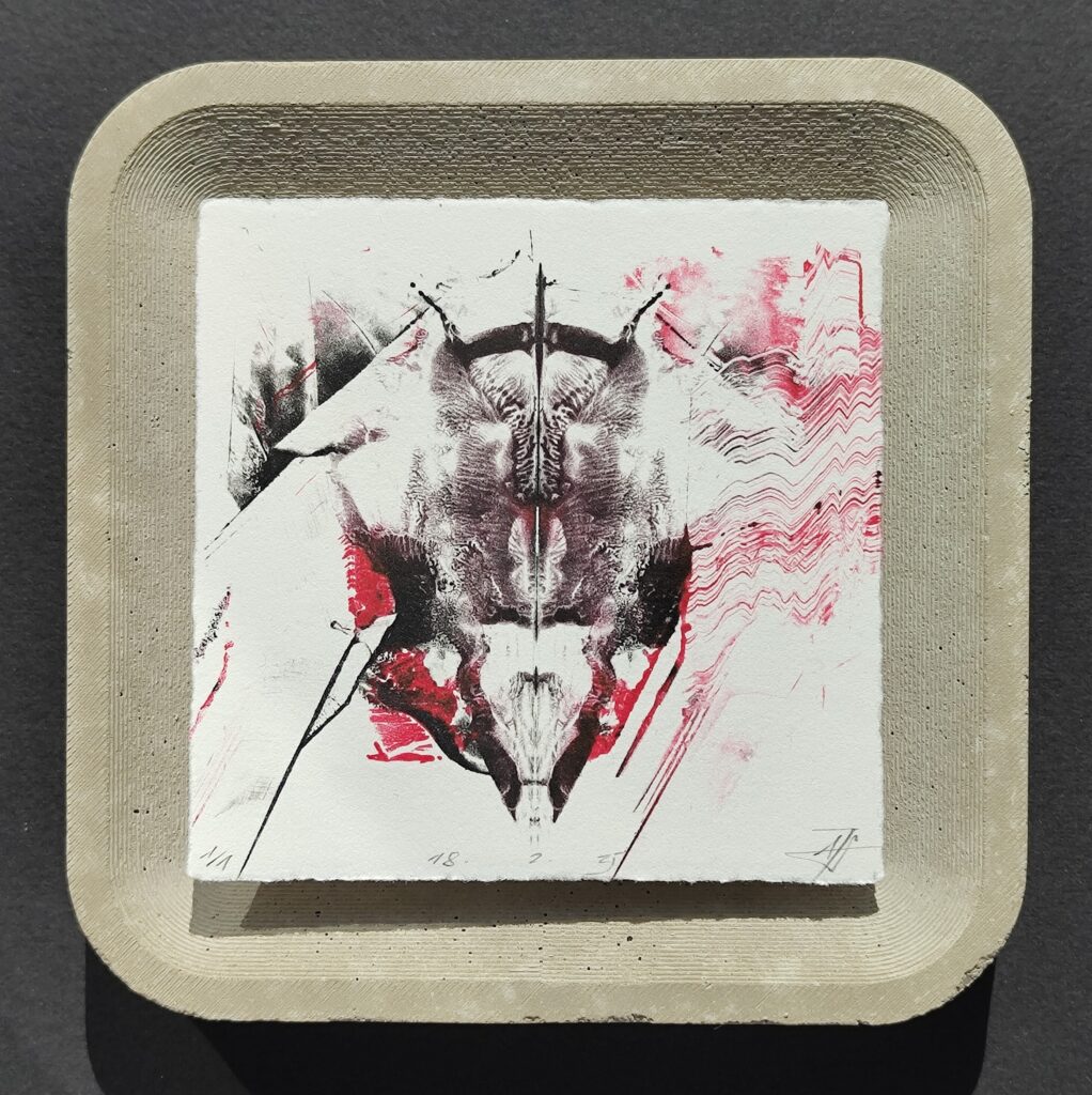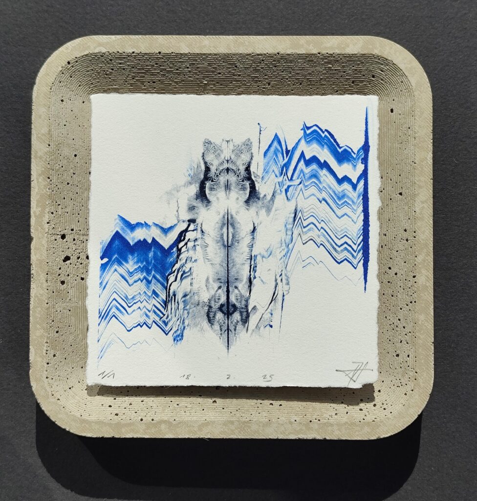 Seit 2025 arbeite ich Brazygraphien als Fresken in Beton. Eines dieser Werke wurde in Kooperation mit Ernst Miesgang auf der Parallel Vienna 2025 ausgestellt.